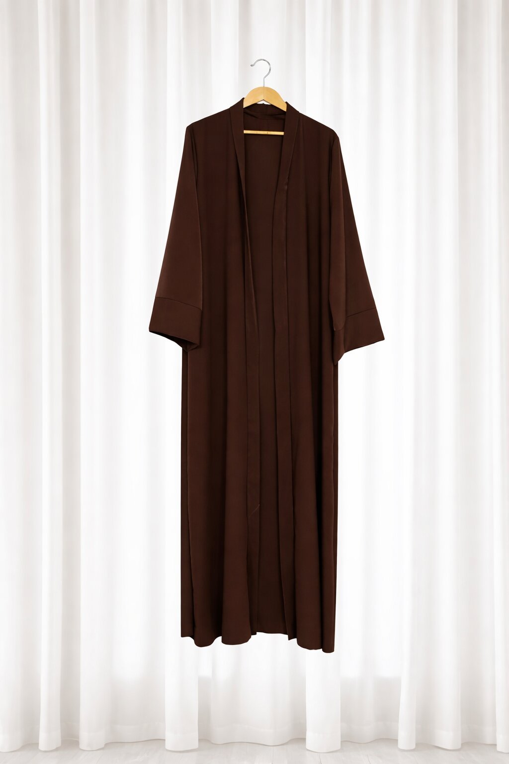 Abaya e hapur një-pjesëshe me prerje të pastër dhe rrjedhje elegante – ideale për shtresim dhe kombinim me çdo stil modest.